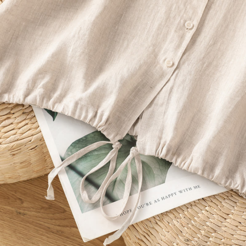 Buddha Stones Sommer Unifarbenes Kurzarm-Baumwollhemd für Damen mit Knopfleiste - image 1