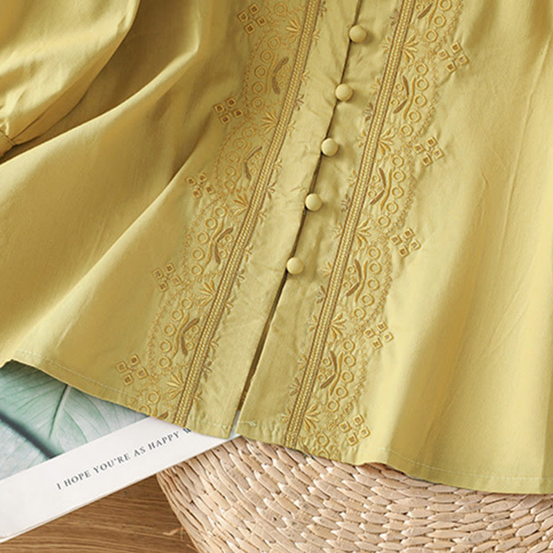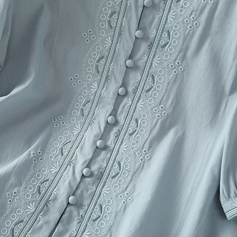 Buddha Stones Symmetrische Stickerei Baumwolle Damen V-Ausschnitt Shirt - image 32