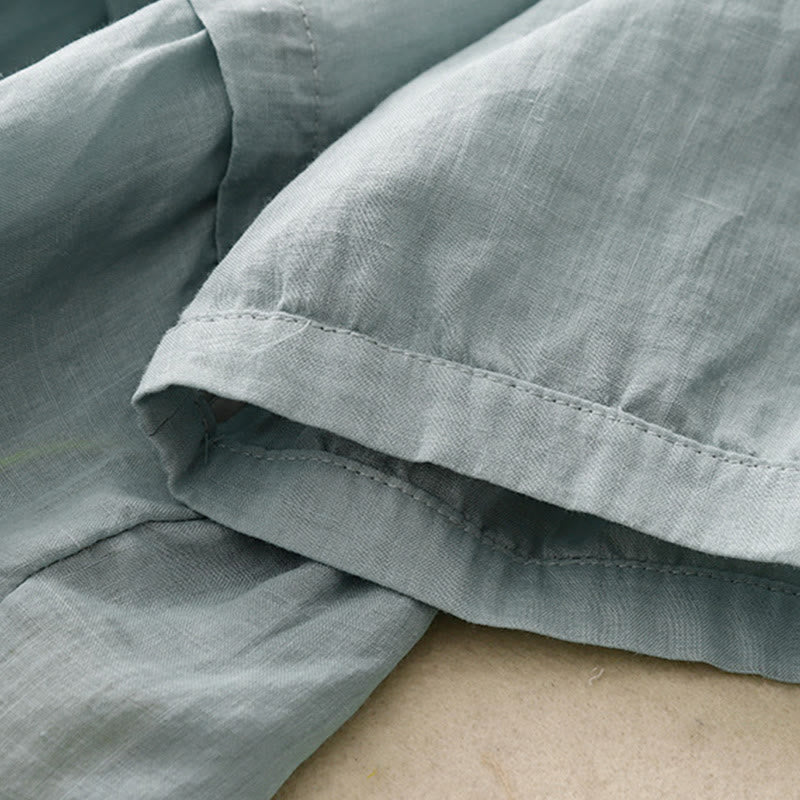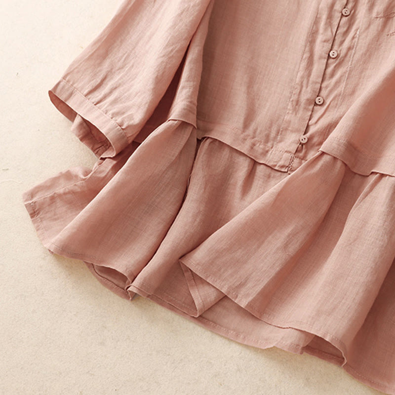 Damen-Baumwollhemd mit Dreiviertelärmeln und Buddha Stones -Stickerei vorne mit Knopfdesign