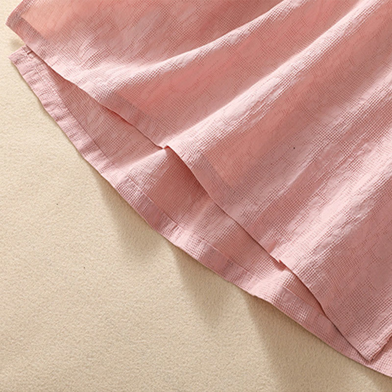 Kurzärmliges Baumwoll-Leinen-Hemd mit Buddha-Steine-Pflaumenblüten-Stickerei und Froschknopf - MistyRose - 2XL(Passend für US8-10; UK/AU12-14; EU40-42) - image 0