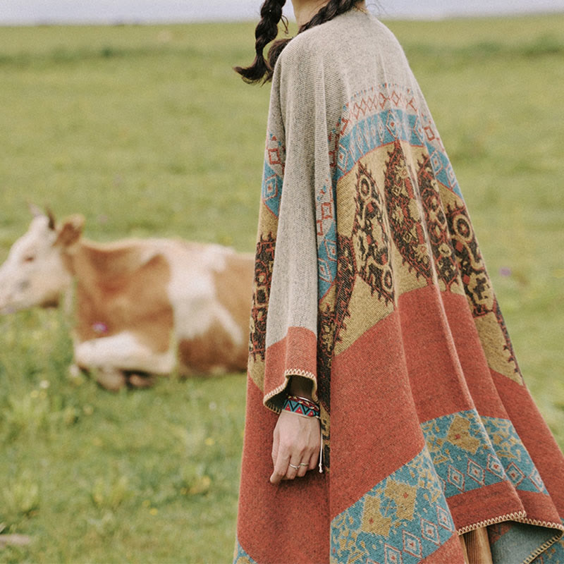 Tibetischer Schal mit Buddha Stonesn, Rautenmuster, warmer Wintermantel - image 21