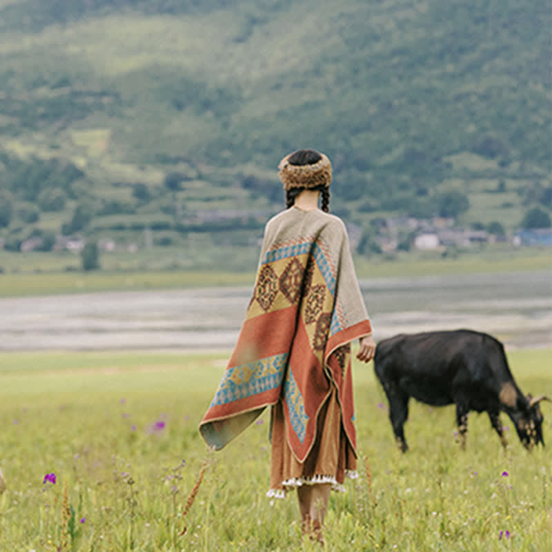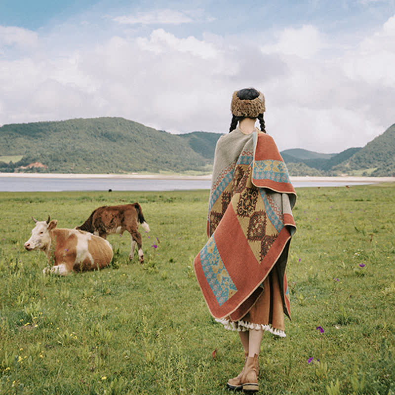 Tibetischer Schal mit Buddha Stonesn, Rautenmuster, warmer Wintermantel