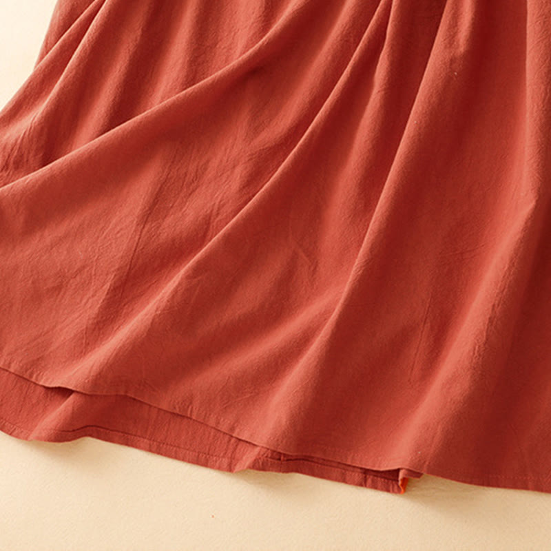 Buddha Stones Fall Reversknöpfe Schnürdesign Langarm-Midikleid aus Baumwolle mit Taschen - OrangeRot - US14, UK/AU18,EU46 (2XL) - image 0