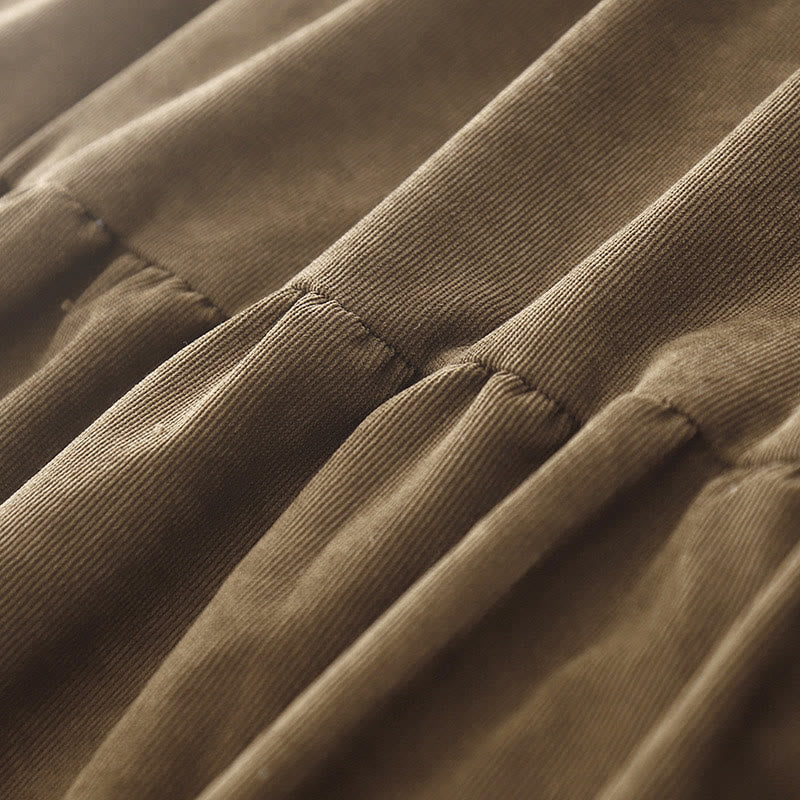 Buddha Stones – Langärmliges Midikleid aus Baumwollcord mit Peter-Pan-Kragen und Taschen