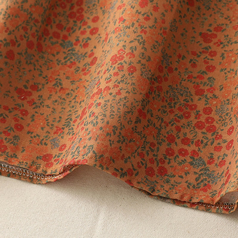 Buddha Stones – Lässiges Midikleid aus Baumwolle und Leinen mit Blumenspitze, Rundhalsausschnitt und langen Ärmeln und Taschen - DunkelOrange - US8-10, UK/AU12-14,EU40-42 (2XL) - image 1