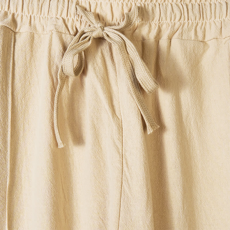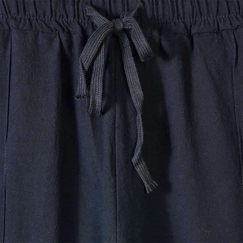 Buddha Stones Einfarbige Herren-Baumwollhose mit seitlichen Knöpfen und Taschen