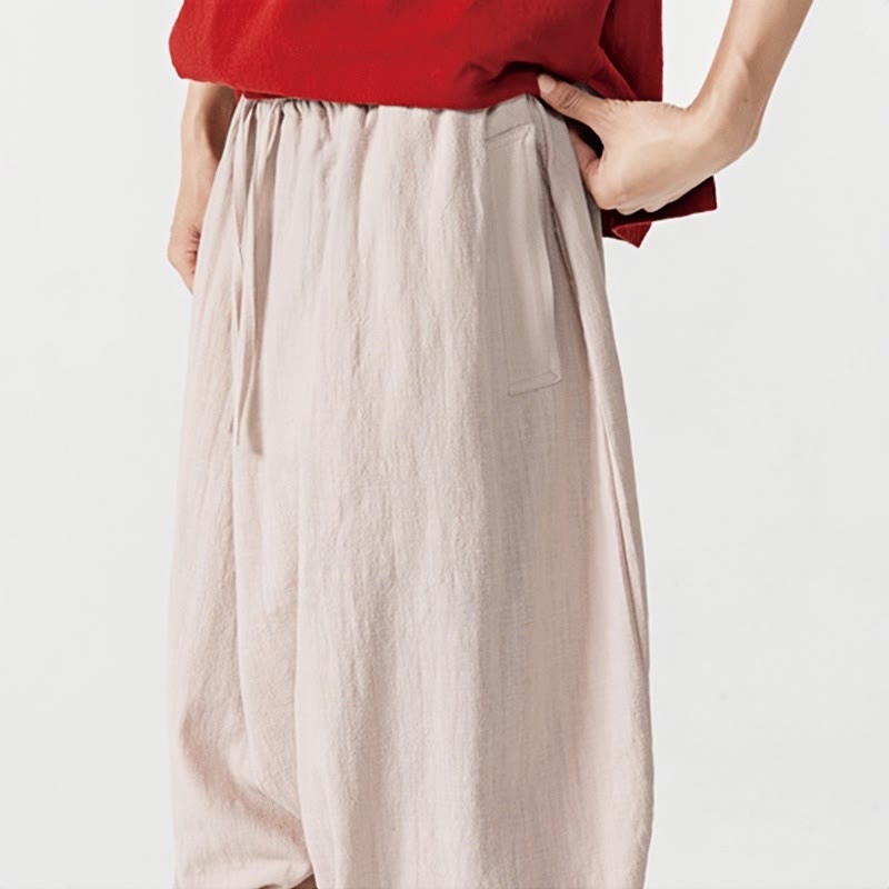 Buddha Stones Frühling Einfarbige Herren-Haremshose mit Kordelzug und Taschen - image 4