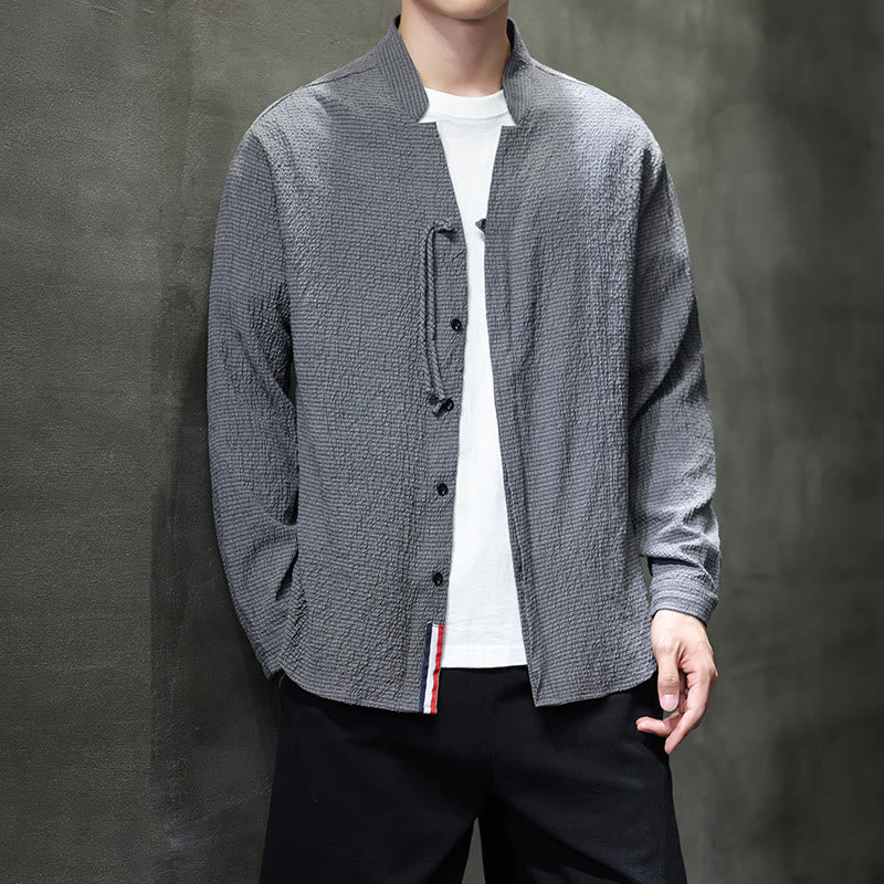 Buddha Stones Herbst Einfarbig Herren Knopf Langarmhemd Kleidung