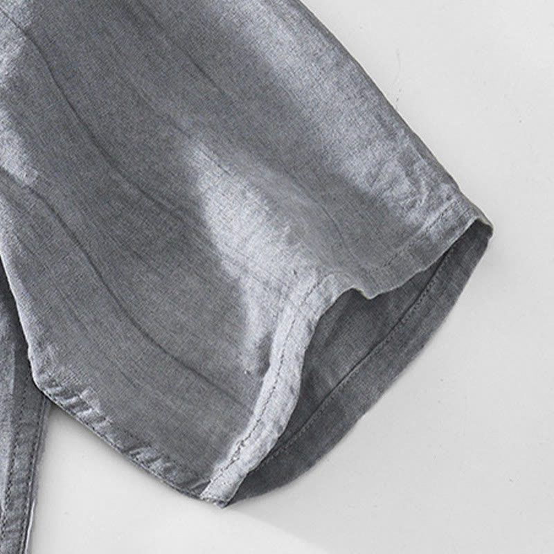 Buddha Stones Herrenhemd mit halben Knöpfen und V-Ausschnitt, kurzärmlig, Ramie-Baumwolle