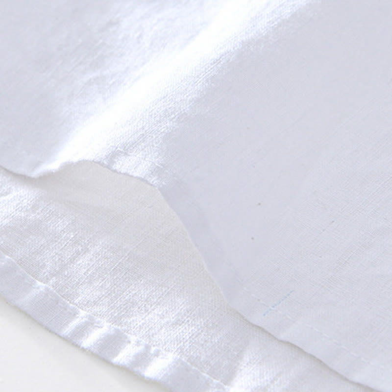 Buddha Stones Herrenhemd mit halben Knöpfen und V-Ausschnitt, kurzärmlig, Ramie-Baumwolle - Weiß - US/ UK/AU44, EU54 (4XL) - image 13
