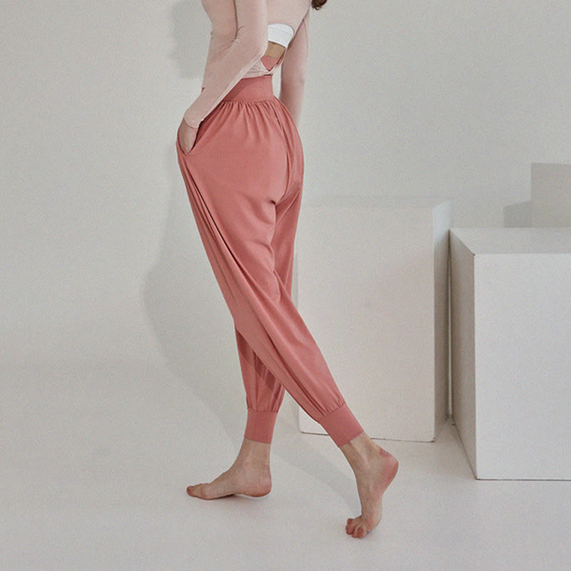 Buddha Stones Lässige, einfarbige, hohe Taille, schnelltrocknende Leica-Hose für Damen mit Taschen