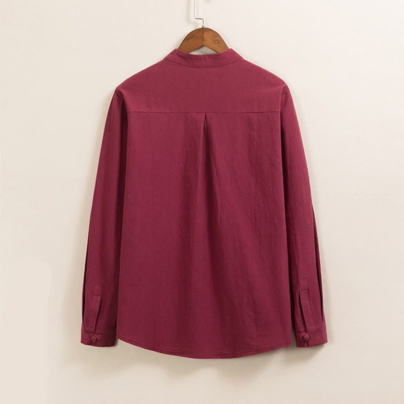 Buddha Stones 2-teiliges schlichtes Herren-Set mit Froschknöpfen, langärmelig, Baumwollhemd und Hose mit Taschen - image 11