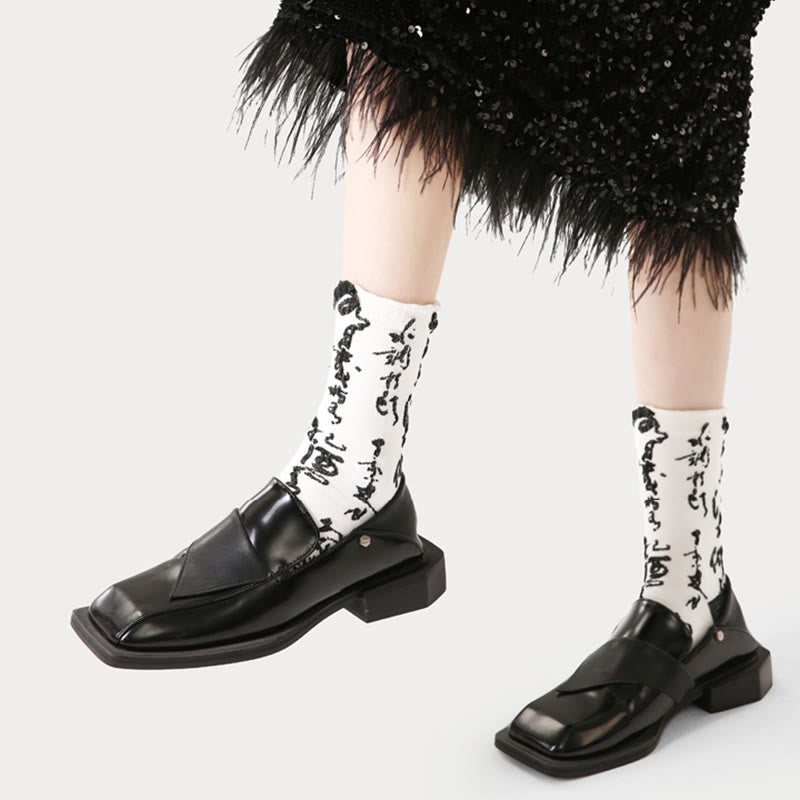 - Kalligrafie-Design: Inspiriert von der traditionellen chinesischen Kalligrafie zeichnen sich diese Socken durch fließende Pinselstrichmuster aus, die Eleganz und kulturelle Tiefe vermitteln und alltägliche Kleidung in ein subtiles künstlerisches Statement verwandeln.