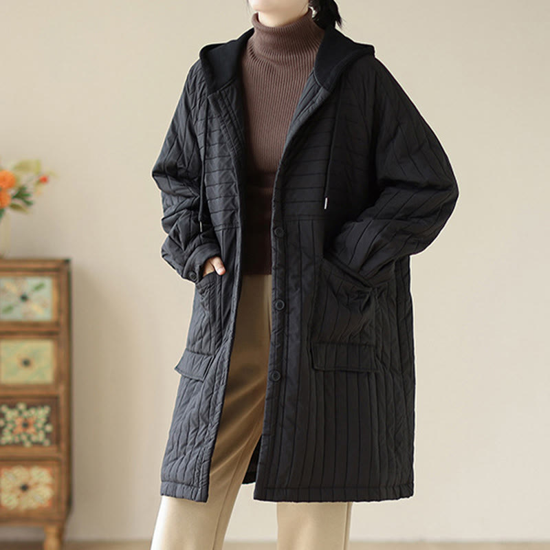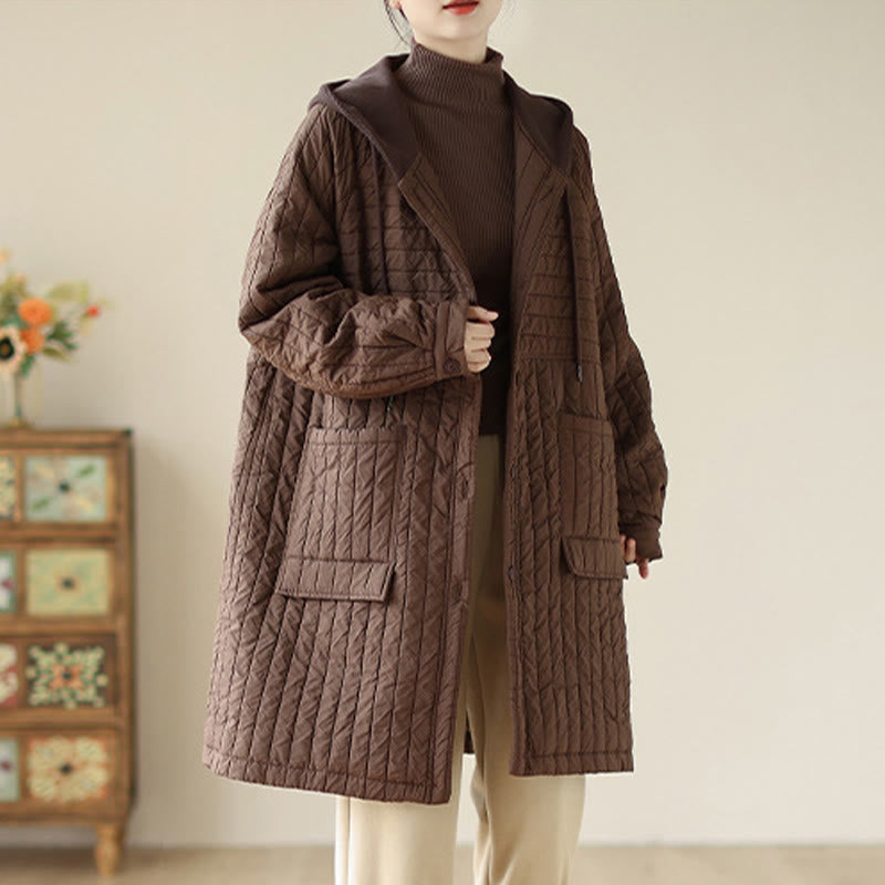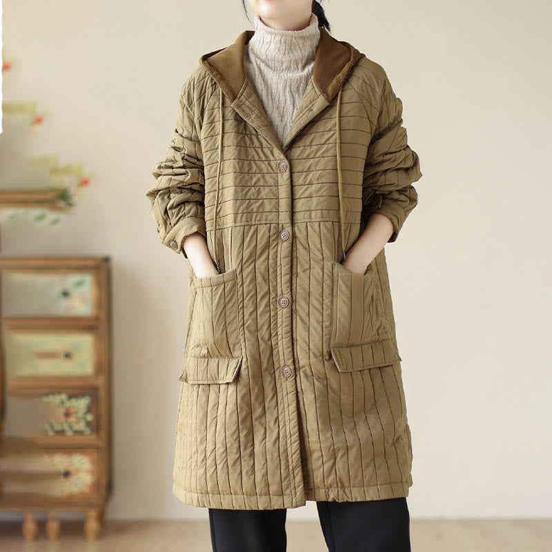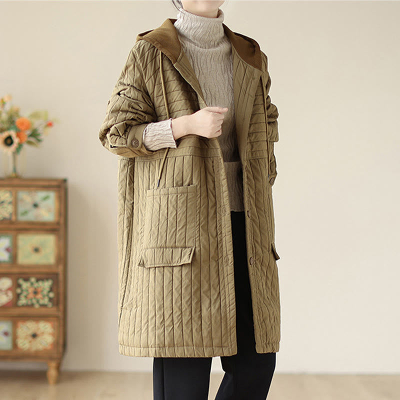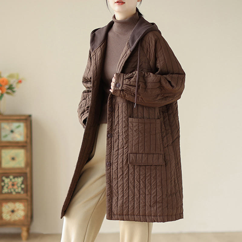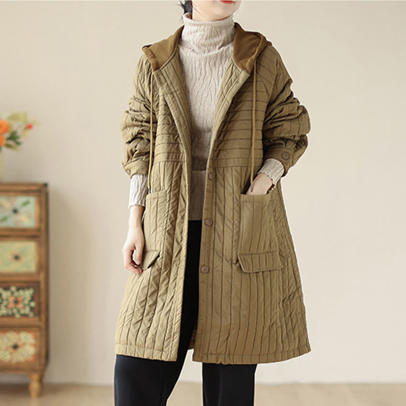 Buddha Stones Damen-Baumwollmantel mit Taschen und schlichtem Einschnitt - image 1
