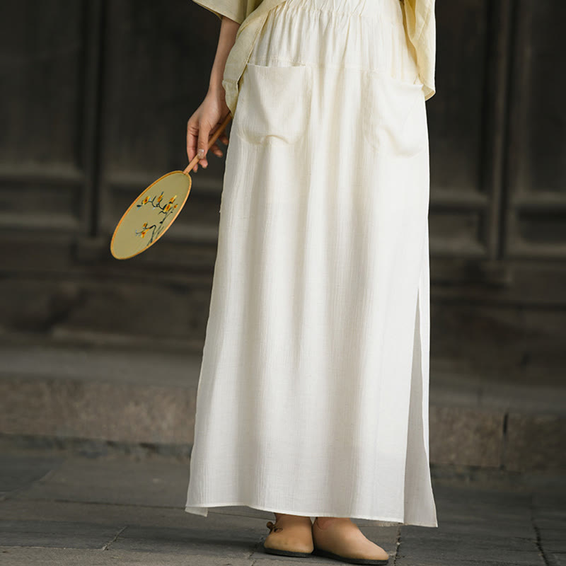 Buddha Stones Damenrockhose mit einfarbigem Saum und Schlitzdesign und Taschen