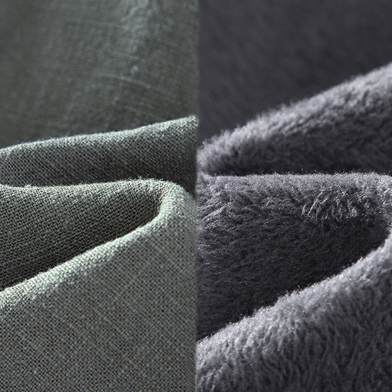 Buddha Stones Herren-Jacke, einfarbig, langärmlig, mit Thermo-Fleece gefüttert, Ramie-Leinen-Baumwoll-Jacke mit Taschen - image 12