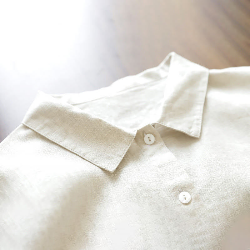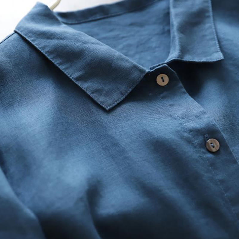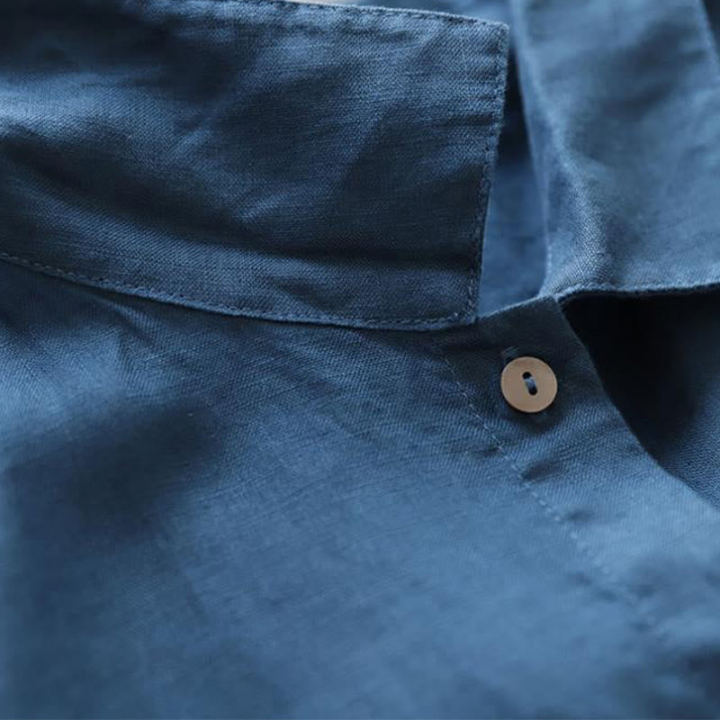Buddha Stones – Lässiges, schlichtes Midikleid aus Leinen mit Schnürung und Stehkragen und Taschen - image 10