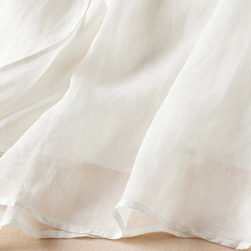 Buddha Stones – Midikleid aus Baumwollfaser mit besticktem Blattmuster, Rundhalsausschnitt und halblangen Ärmeln - Schnee - US8-10, UK/AU12-14,EU40-42 (2XL) - image 7