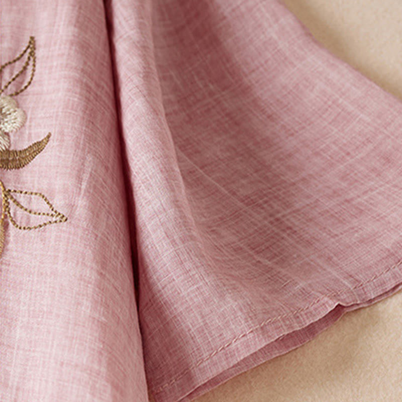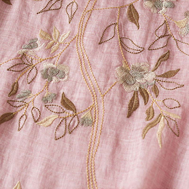 Buddha Stones – Midikleid aus Baumwollfaser mit besticktem Blattmuster, Rundhalsausschnitt und halblangen Ärmeln - Rosa - US8-10, UK/AU12-14,EU40-42 (2XL) - image 14