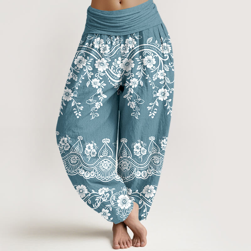 - Design: Diese Haremshose ist mit Blumen, Ranken und Blättern verziert, die die Schönheit der Natur, Vitalität und Reinheit symbolisieren. Ihre fließenden, anmutigen Linien und die filigranen, aber dennoch harmonischen Verzierungen schaffen eine klassische und elegante Ästhetik.