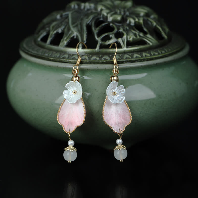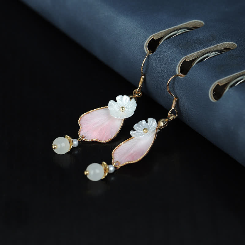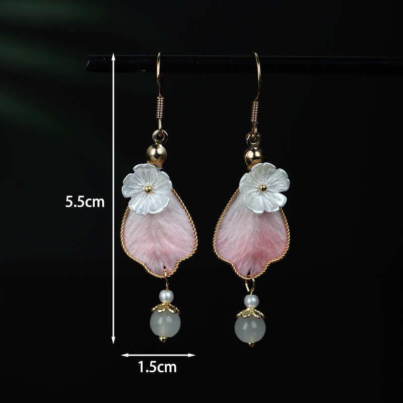 Buddha Stones Handgefertigte Ohrhänger aus Seide mit Blütenblattmotiv – Glücksbringer und Segenssymbol