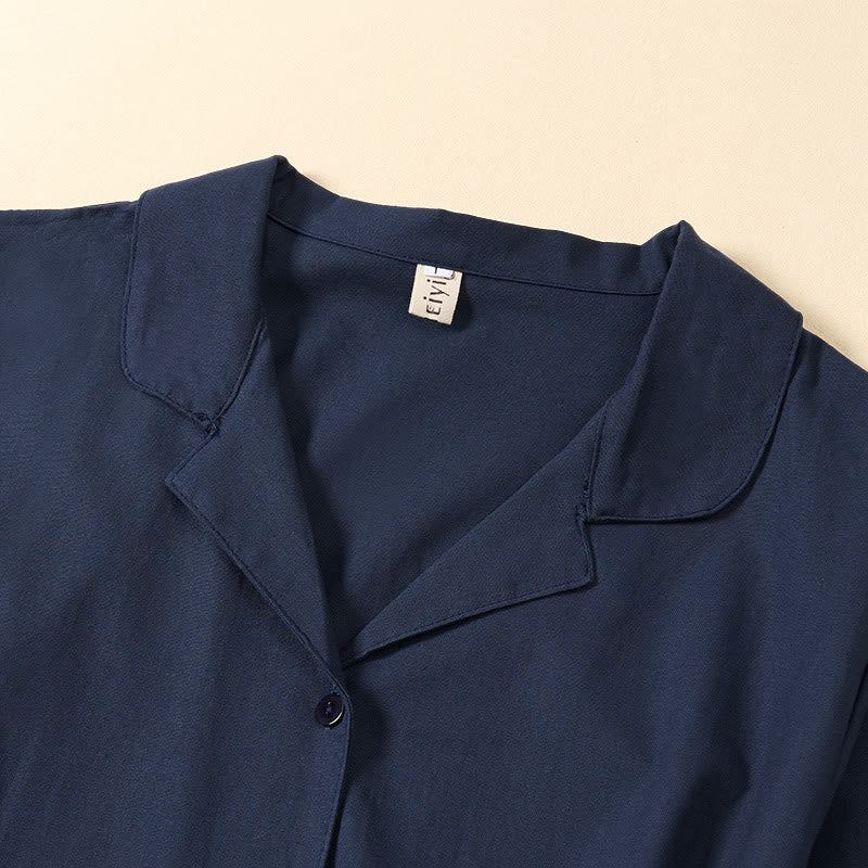 Buddha Stones Sommerliches, einfarbiges A-Linien-Kleid mit kurzen Ärmeln und Schnürung, Taschen - image 1