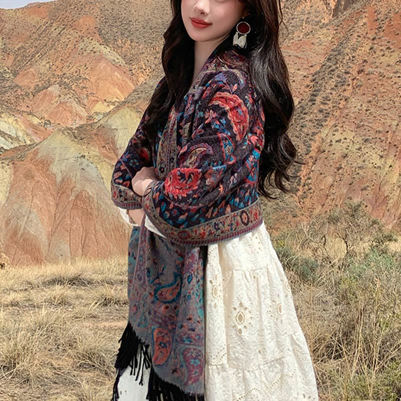 - Vielseitig einsetzbar: Dieser hochwertig gestaltete, modische tibetische Schal kann als Reisedecke, Abendschal oder Überwurfdecke zum Kuscheln auf dem Sofa verwendet werden und kann mit Mänteln, Pullovern, Pullis, Hemden und mehr getragen werden.