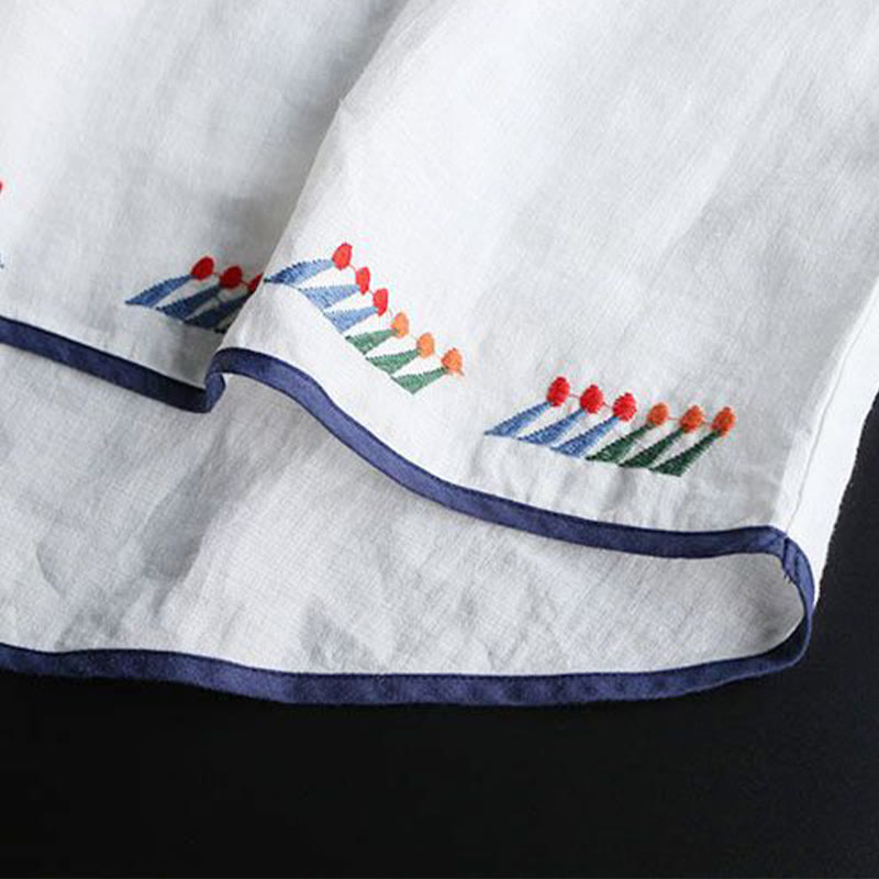 Buddha Stones Retro Künstlerische Stickerei Blumenmuster Rundhals Damen Baumwolle Leinen Kurzarm T-Shirt - image 16