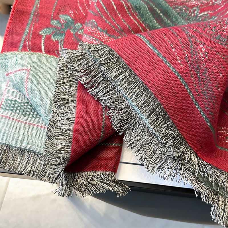 Buddha Stones, Herbst-Lotusblumen, Meereswellenmuster, weicher Schal, Quasten-Tuch - Dunkelrot - 185 x 65 cm - image 4
