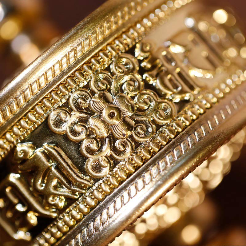 Diese sechs wahren Worte „Om Mani Padme Hum“ sind das häufigste Mantra in Tibet. Dieses Mantra erzeugt den Klang und die Schwingung, die es Ihnen ermöglichen, sich eins mit dem Universum zu fühlen. Dem Mantra wird eine hohe spirituelle und kreative Kraft zugeschrieben. Sechs wahre Worte (om mani padme hum) Bedeutung: Om bedeutet die Schwingung des Universums und symbolisiert den unreinen Körper, die unreine Sprache und den unreinen Geist. ma ni bedeutet das Juwel und symbolisiert Faktoren der Methode, Mitgefühl und Liebe, die altruistische Absicht, erleuchtet zu werden. pad me bedeutet Lotus und symbolisiert Weisheit. hum bedeutet Untrennbarkeit; symbolisiert Reinheit und kann durch die Einheit von Methode und Weisheit erreicht werden. Dieser Gesang bringt Ihnen Freude und friedliche Schwingungen und angeblich enthält dieser Vers die Wahrheit über die Natur des Leidens und wie man seine Ursachen beseitigen kann.