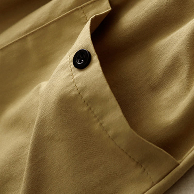 Buddha Stones Casual Vintage Einfarbige Knopfdesign Damenhose aus Baumwolle mit weitem Bein und Taschen - image 9