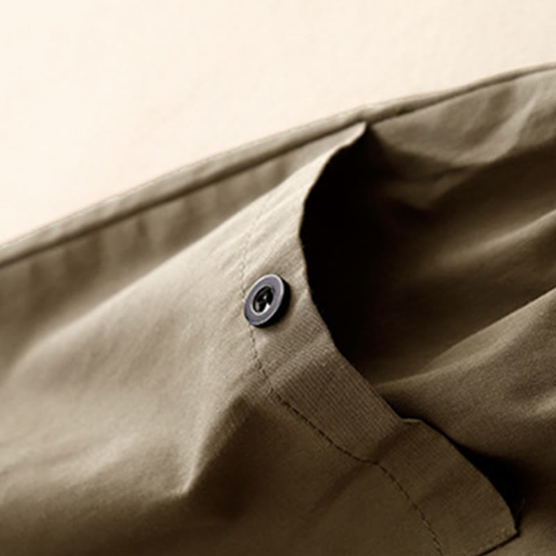 Buddha Stones Casual Vintage Einfarbige Knopfdesign Damenhose aus Baumwolle mit weitem Bein und Taschen - image 16