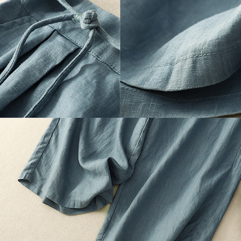 Buddha Stones Frühlings-Lässige, einfarbige Hose mit Kordelzug, Damen-Baumwollleinen, Länge 7–8, weites Bein, mit Taschen - image 18
