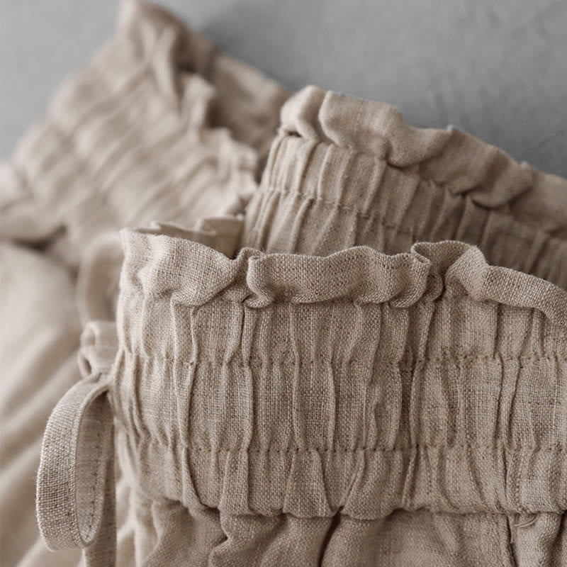 Buddha Stones Lässige Baumwollhose mit hoher Taille, Rüschen und Kordelzug, weites Bein und Taschen für Damen - image 22