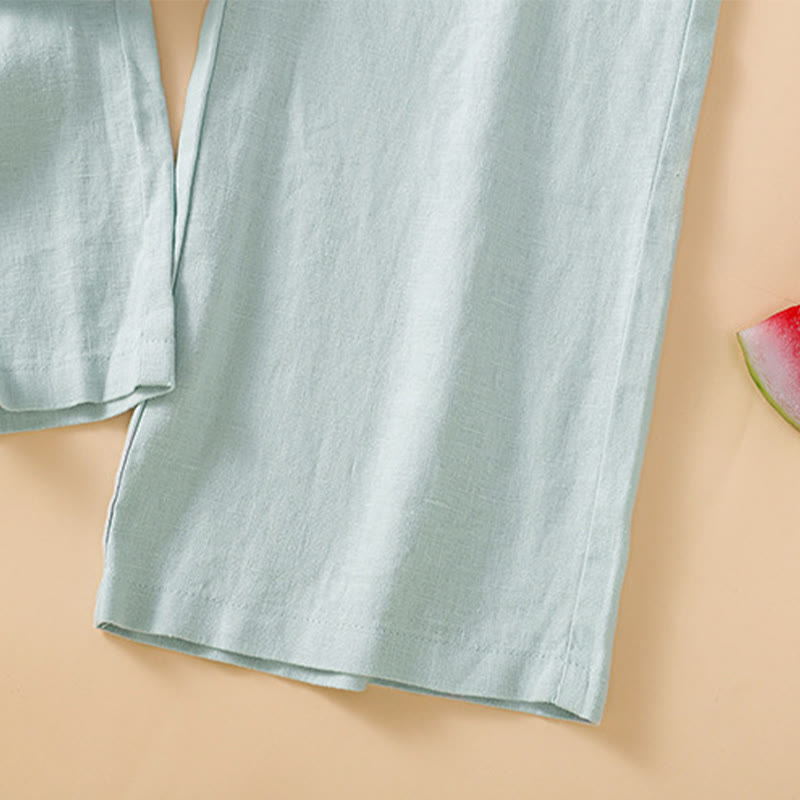 Buddha Stones Lässige Hose mit geradem Bein, Baumwolle, Damen, Länge 7–8, weites Bein, mit Taschen