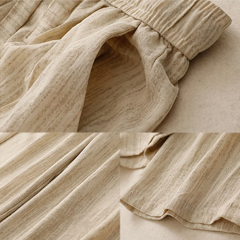 Buddha Stones Lässige Sommerhose aus Baumwolle mit weitem Bein und Schnürung im Strukturdesign für Damen mit Taschen