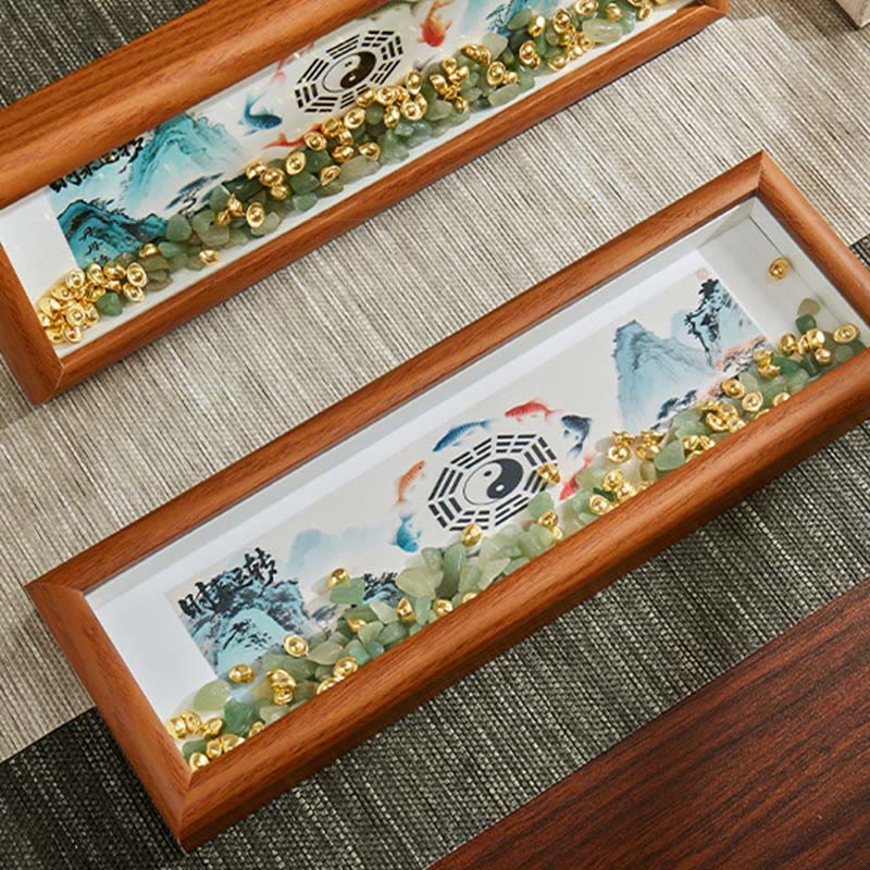 Fische zählen im Feng Shui zu den am weitesten verbreiteten Glückssymbolen und stehen für Reichtum und Fülle. Das chinesische Wort für Fisch (Yu) klingt ähnlich wie „Überschuss“ und symbolisiert somit Glück im Überfluss. Zudem gehören Fische zum Element Wasser, und Wasser steht im chinesischen Glauben ebenfalls für Wohlstand und Reichtum. Darüber hinaus symbolisiert der Koi Erfolg und Entschlossenheit. Er ist außerdem mit dem Yin-Yang-Symbol verbunden. Die schwarzen und weißen Tropfen des Yin-Yang-Symbols sollen zwei Kois darstellen, einen männlichen und einen weiblichen. Daher wird ein Koi-Paar oft als Glückssymbol für eine glückliche Ehe verwendet.