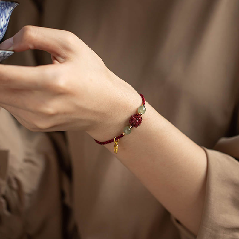In der buddhistischen Kultur wird Zinnober häufig zu Gebets- und Rosenkränzen verarbeitet. Es wird beim Rezitieren buddhistischer Schriften verwendet. Es kann den Geist der Menschen beruhigen, ihren Geist beruhigen, ihren Geist konzentrieren und ihre Weisheit verbessern. Es ist ein unverzichtbares Maskottchen für diejenigen, die Buddha verehren.