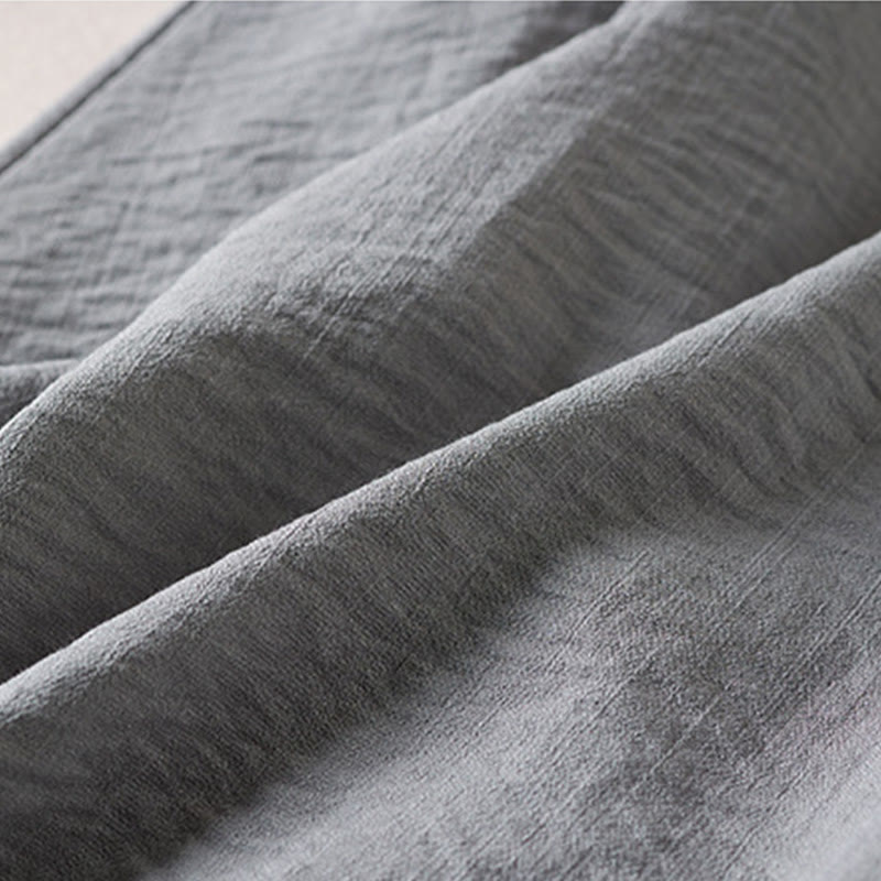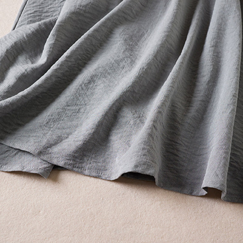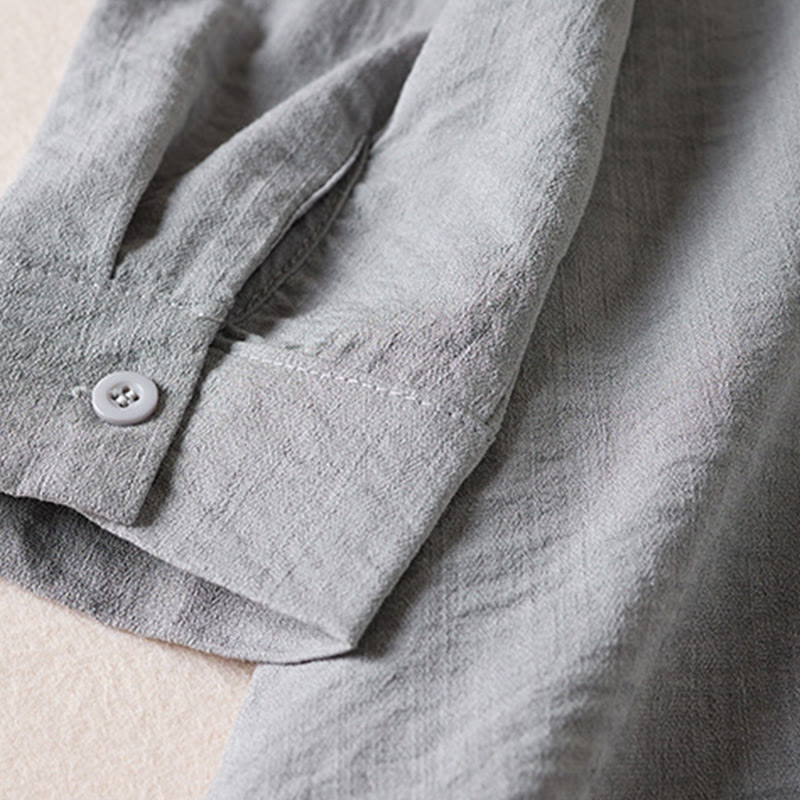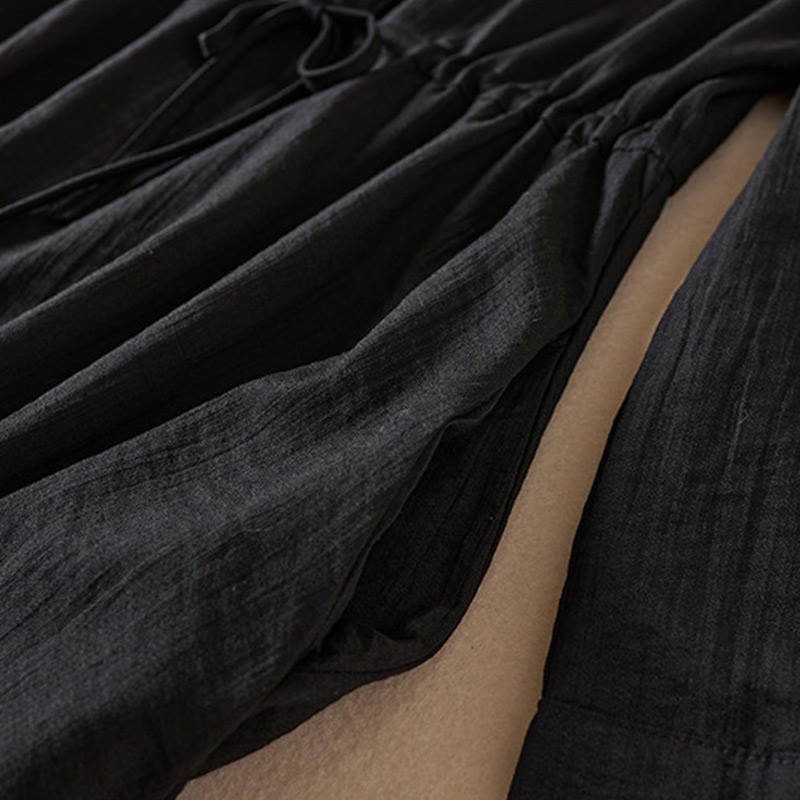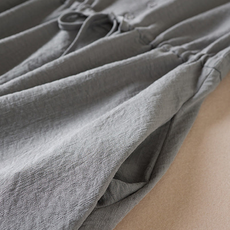 Buddha Stones – Reinfarbiges, langärmliges Midikleid aus Baumwolle mit gekerbtem Kragen und Kordelzug und Taschen
