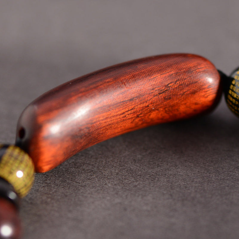 Das kleinblättrige rote Sandelholz hat die Wirkung, Böses zu vermeiden und den Frieden zu schützen, Katastrophen zu beseitigen und Böses zu lindern, Böses zu beseitigen und Reichtum anzuhäufen, Feng Shui zu verändern, Buddhas spirituelle Kultivierung zu bieten, Krankheiten zu heilen und Böses zu lindern. Im „Kompendium der Materia Medica“ wird beschrieben, dass Pterocarpus striata das Herz beruhigt, die Nerven beruhigt, Muskeln und Blut entspannt, entzündungshemmend und schmerzlindernd wirkt. Das Tragen von kleinblättrigem rotem Sandelholzschmuck kann unglaubliche magische Kräfte und Wirkungen haben, z. B. die Stärkung der Immunität, die Vorbeugung des Alterns, die Stabilisierung der Herzfrequenz, die Verbesserung von Schlafstörungen und andere medizinische Wirkungen.