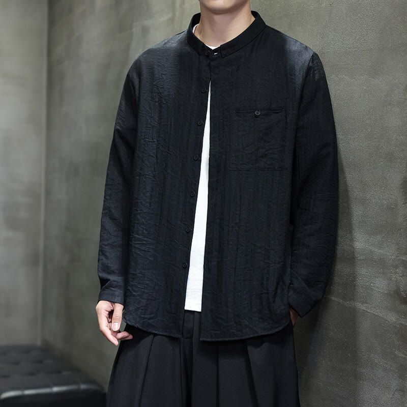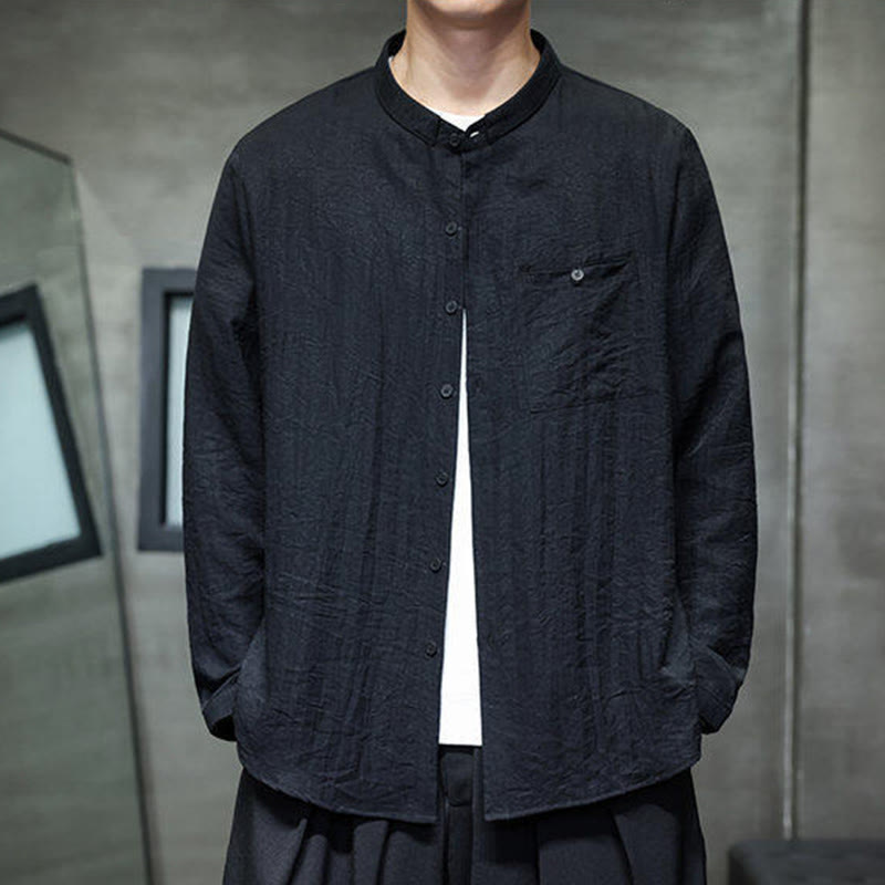 Buddha Stones Spring Herren Langarmhemd mit einfarbigem Knopfdesign - image 15