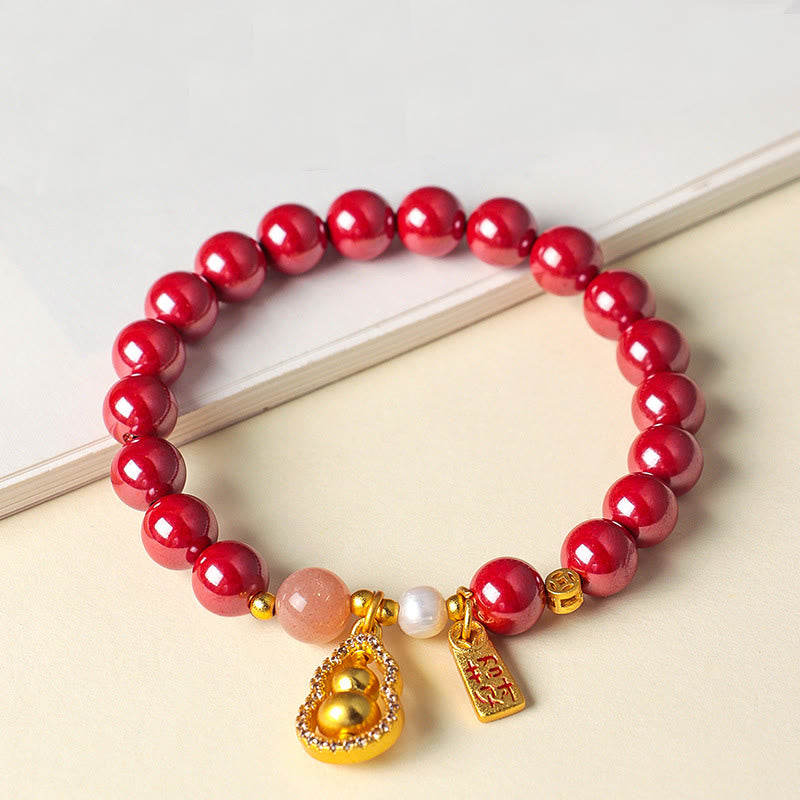 - Materialien: Zinnober, Pfirsichmondstein, Perle