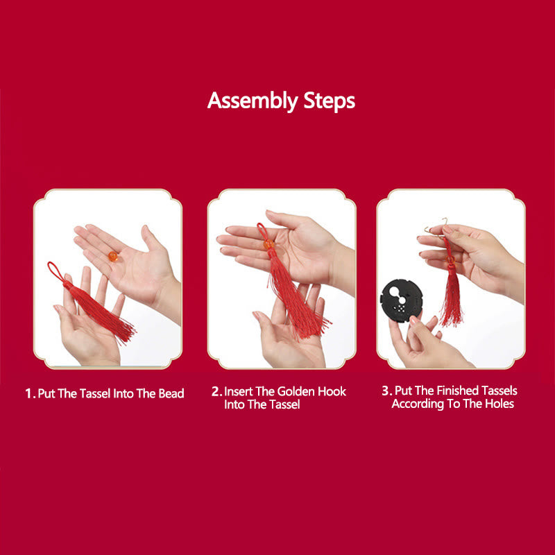 3. Die fertigen Quasten entsprechend den Löchern anbringen.